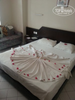 Ездили семьей, с ребенком 2 года. Номер стандартный, чистый, есть полотенца, фен, телевизор-немецкие и турецкие каналы, кондиционер, балкончик, а сейф и интернет -платно.