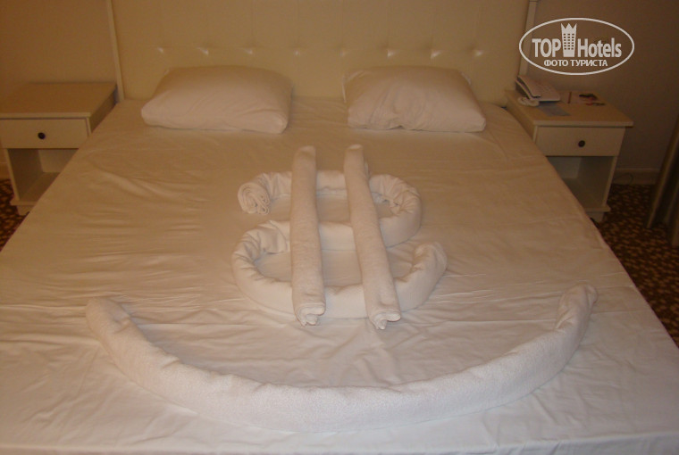 В Турции мы отдыхали впервые. Впечатлений масса, словами не передать. После приезда в отель нам показалось, что мы попали в СКАЗКУ. Он поразил своим величием, вокруг было море цветов. Номера небольшие, но очень уютные. Каждый день их убирали горничные, постель заправлялась каждый раз по-новому, на ней лежали живые цветы, что придавало неповторимое очарование каждому дню. Единственное что хотелось бы иметь в номере это чайник, чтобы попить кофе вечером на балконе и полностью расслабиться.