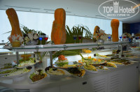 По поводу питания претензий не было, огромный выбор блюд на любой вкус. Завтрак с 07.30 до 10.00, обед с 12.30 до 14.30, ужин с 19.00 до 21.00. Также есть поздний завтрак с 10.00 до 10.30, снэк бар (это на пляже, Fast Food) с 11.00 до 16.00, чайный час (в баре у бассейнов) с 17.00 до 18.00 и ночной буфет (ночной суп в баре у бассейна) с 23.30 до 00.30. В общем, голодными остаться там просто невозможно!