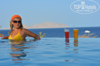 Территория отеля действительно большая, ухоженная и красивая. Бассейн большой. Чтоб полавать посмотреть рыбок, по лесенке можно спуститься с понтона, вполне удобно. Рыбок не очень много, но достаточно есть, кого посмотреть. Для детей отгорожена небольшая территория для купания с заходом с берега. Но дно плохое, можно пораниться сильно, острые камни. Видела, детишки ранились не один раз. С лежаками проблем нет, всегда есть свободные, что и на море, что и рядом с бассейном. Пляжные полотенца выдают по карточкам, но если вдруг карточки забыли, то могут просто записать на номер. Бар около бассейна Pool Bar работает бесплатно с 10:00 до 17:00, после 17:00 он уже платный. Воду, газированные напитки Колу, Спрайт и т.п., пиво подают в банках. Коктейли в пластмассовых бокалах, похожих на стеклянные, но могут дать просто в пластиковом стаканчике, мы всегда просили, чтоб в бокальчиках было. Коктейли вполне приличные для Египта. Кофе, чай все в чашечках. Выписывают нулевые чеки. После 17:00 бесплатные напитки можно взять в баре Sky Lounge, который находится на террасе, рядом с рестораном Ramses, это тот, где кормят по системе все включено, шведский стол. Недалеко от бассейна еще есть джакузи.