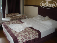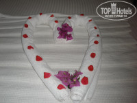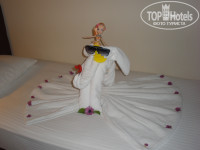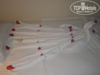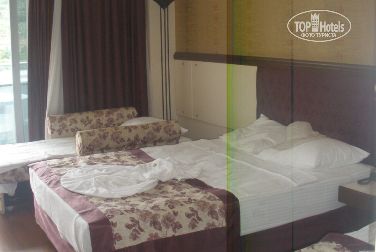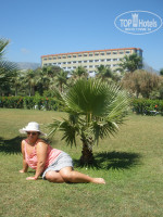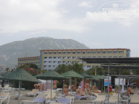 Но вернусь к отелю: персонал в отеле очень доброжелательный и отзывчивый, уборка номеров была на высоте, женщина, которая убиралась, всегда делала разные фигурки, кормили просто супер - всегда несколько видов мяса, гарниров (особенно понравился рис - всегда приготовлен по-новому), много фруктов, очень вкусные бисквиты, несколько сортов сыра и т.д.... За время прибывания в отеле у меня и дочки были дни рождения - ей я заказывала торт (был ОЧЕНЬ вкусный - плюс нам заранее украсили стол, преподнесли его со свечками и бенгальскими огнями - просто класс- дочка сказала, что это просто незабываемо!). Помимо этого в номера приносили вино и фрукты - очень приятно! Пляж просто замечательный - песочек, у самого входа немного мелкой гальки, вода голубая и такая прозрачная, что в штиль с пирса видно песчаное дно. Очень зеленая и ухоженная территория, очень понравился крытый бассейн и хамамм. В отеле очень много отдыхающих с детьми, а вот молодежи не очень, поэтому порекомендую отель в первую очередь именно семьям с детьми, им там просто раздолье. По вечерам перед мини-диско показывают мультфильмы, днем в мини-клубе проводят разные соревнования, а после мини-диско победителям вручают дипломы. У нас был номер с видом на горы - очень красиво. Если у вас маленький ребенок- то просите или такой же, или с видом на море, так как в номерах с видом на бассейн бывает шумно из-за проходящих возле него шоу. Эти номера хороши для тех, кто не привык рано ложиться - прикольно смотреть на происходящее не из-за столика, а с собственного балкончика. А вообще отель прекрасный!!! Большое спасибо всем тем, кто там работает, особенно менеджерам Нелли и Мустафе.