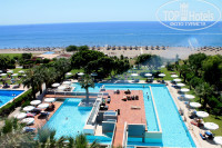 два бассейна 1) двухуровневый, который вечером подсвечивается цветными огнями 2) более спортивный (глубина 1м-3м) 3) маленький детский «лягушатничек»( русские мамы часто были недовольны, что он располагается «на проходе» и на солнцепеке в то время как иностранные мамы и папы одевали своим детям панамки, брали мячики и отдуши там резвились, а дети были счастливы; детская площадка (горки, качели, песочница, но без навесов от солнца), волейбольная площадка, футбольная, стол для пинг-понга, шезлонгов хватает (хочешь, лежи под зонтиком, хочешь, на солнце или же под раскидистым деревом). Очень хороший вход в море, не нужно идти по раскаленному песку, к воде ведет дорожка из деревянных панелей. И вот оно, чистейшее, прозрачное море с мягким песочком под ногами. Душ на пляже работает исправно.