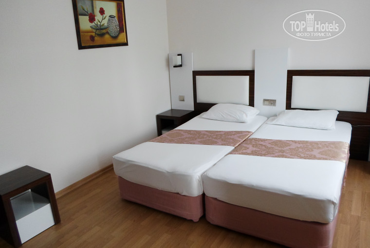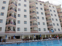 Были в Турции в первый раз,сравнивать так сказать не с чем.отдыхали с 15 по 25 мая 2013г.Начну с самого начала, приехали в отель в 9.00 утра заселили через 10 минут без всяких доплат,на ресепшене стоял чуть чуть русско говорящий мужчина. Номер дали на 4 этаже 403,окна как раз выходили на отель Timo 5* но выходя на балкон с право отлично было видно море,а с лево потрясающий вид на горы,это даже лучше потому что у друзей был номер на море который так сказать через дорогу и от дороги было очень шумно,а на бассейн шумно от музыки,не отдохнуть днем. Номер чистый абсолютно все новое. сенсорный телевизор ,зеркало ,паркет, пластиковые окна кондиционер со сплит системой. чистая модная душевая. убирали через день но нам и не надо было чаще и так все чисто было. холодильник маленький но работает. заплатили за сейф 20$ ну в общем то как и везде расценка. Кормили хорошо. за 10 дней не один раз была курица рыба мясо. салаты разные гарниры повторялись. Салаты иногда сильно заправляли майонезем видимо из остатков мы эти салаты не ели просто,такое бывает во всех отелях,чтоб продуктам не недоеденным не пропадать. Сладости у них великолепные всегда свежие,но это как нам сказали у них супер какой то повар кондитер. на пляже так же бар где днем Гамбургеры и картофель фри с прохладительными напитками. Пляж чистый шезлонгов хватало на всех. Анимации как тут уже писали никакой абсолютно. кто едет спать есть и загорать. самый лучший вариант.=))) Кстати базар и центр районного центра Конаклы прям за углом так сказать,все рядом,есть где погулять что посмотреть.Отель в основном рассчитан на немцев,поляков и финов ,русских не очень много за счет этого и чистый. За такие деньги супер отель. Большего ничего и не надо было. Советуем!!!