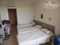 По приезду расселили быстро, паре, которой достался номер с раздельными кроватями, номер по просьбе оперативно поменяли. Жили в корпусе, номер 313, вид на сад и кусочек моря. В номере свой кондиционер-сплит, маленький телевизор, три раздельные кровати с неплохими матрасами, пустой минибар, сейф (ключ не ресепшн, 2 евро в день). Санузел с ванной, горячая вода круглосуточно. Отделка простенькая, но все очень чисто и свежо.
