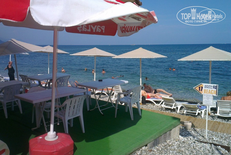 Пляж - идти 5 мин. тапочек не покупал, т.к. человек не маленький и ступня большая. Узковат конечно, там много таких пляжей "подпёртых" отелями 1-ой линии. Галька действительно крупная и глубина не постепенная, но единственная трудность на пляже без тапочек - это выходить при средних волнах, на таких камнях тебя "колбасит" и выходишь дольше :-) .