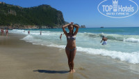 Пляж. До пляжа подземный переход метров 30. Очень удобно, т.к. на территории отеля было ни песчинки, всегда чисто. Песочно-галечный. Чистый, ухоженный, много лежаков с матрасами, зонтики. Везде расставлены мусорные горшочки. Душ у выхода с пляжа, туалет. Теперь не зависящее от отеля море! В первый же день оно мне не понравилось:) очень соленое, у берега постоянно прибитые волнами водоросли. Заход в море - галька, в метрах трех от берега под водой начинаются камни и валуны. Не поныряешь. В последний день всё-таки умудрилась удариться:(! Чтобы полюбоваться морем и поплавать в прозрачной воде мы приходили на пляж в 7 утра, вот в это время море действительно шикарное, красивое и даже теплое!:)