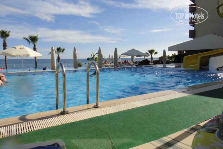 Пляж обалденный, чистый!!! Расположение отеля вдоль берега- не типичное для турецких отелей. Есть 4 Варианта входа в море: по лесенке как в бассейн (подойдет для тех, кто не люби песок, но любит купаться в море), дальше как обычно на берегу песок, потом галька и нормальное углубление, потом пантон, а за пантоном очень хорошо для детей полностью песчаный вход и дно, и мелко если отойти от берега метров на 30 будет по грудь(а дно все еще песок). Первый раз в Турции вижу такое разнообразие входа в море!!!