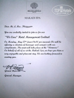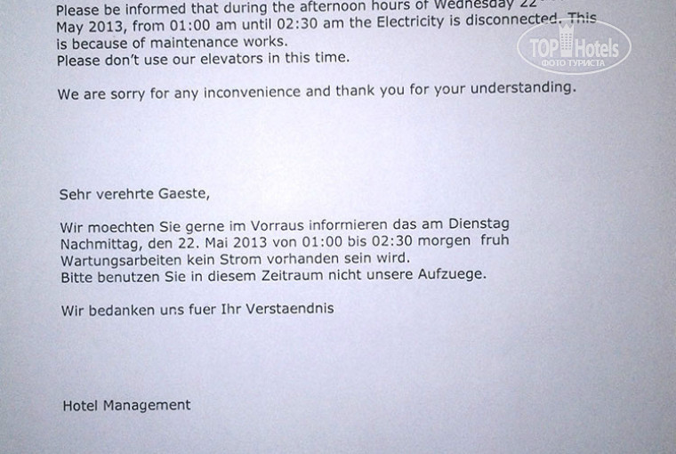 Вообще менджмент отеля постоянно слал письма в номер - то у них electricity maintenance, то комаров морят.