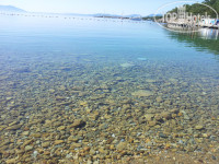 Пляж: при входе в воду (примерно на расстоянии 1 м от суши) расположены булыжники (именно булыжники, а не галька). Линия булыжников (ширина зоны) примерно 2,5 м. Заходя в воду, можно повредить ноги, поэтому многие туристы сразу приобретали обувь для плавания. Без обуви лучше в воду не соваться. При этом, посмотрев, как сделан пирс по левую сторону пляжа, все желание загорать и купаться с него отпало (сваи (опорные балки) завалены, накренены на опасную величину).