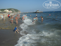 Море. На пляже много лежаков, занимать в 5 утра их не надо, но вход в море просто отвратительный. Огромные валуны и камни, все ноги переломаешь пока залезешь в море. Выход один с пирса, однако если будет немного штормить, то все - не искупаться. Море в этом месте грязное. пляж ни кто особо чистить не собирается.