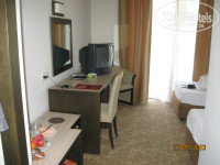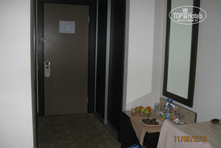 Прибыли мы в отель в 9 часов утра. От вознаграждения за быстрое размещение работник ресепшена отказался и отправил нас на завтрак. Пока мы вкушали сытный завтрак, наш номер был подготовлен к заселению. Номер отличный, с видом на горы. В номере есть всё необходимое, всё аккуратно и чистенько. Всё работало исправно: и кондиционер, и телевизор (5 русских каналов), и сантехника. Также в номере нас ждала бутылка вина и фрукты, т. к. у подруги был день рождения ))).