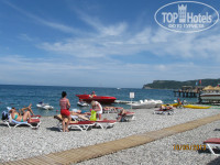 Пляж находится в 5 минутах ходьбы от отеля. Дорога на пляж ведет мимо прудика, в котором живет много черепах, есть утки и гуси. Очень живописно! Пляж чистый, ухоженный, есть пирс и водно-спортивные развлечения. Шезлонгов и матрасов всегда хватало. Море изумительное, чистейшее!