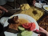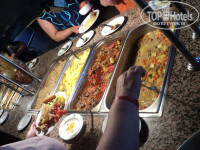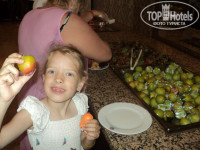 Питание очень хорошее, каждый себе находил что то по вкусу. Мне понравились супы. Из мясного курица, индейка, бараниена, говядина, рыба в разных вариациях. Все вкусно, в меру остро . Даже моя прихотливая дочка кушала все с удовольствием. Гарниры тоже разные, макароны, рис(особенно мне понравился с шафраном), кус-кус, пшеничный плов, различные овощи, тушеные, жаренные на гриле, фаршированные, маринованные овощи мне очень понравились, всегда в наличее сырые овощи. Ещё были разные пироги с начинками, что то вроде пицц. Много сладостей. Осебо впчатлил выбор фруктов. Когда мы ехали домой многие говорили, что им вобще не давали клубнику, даже в 5 звездах. Мы же её объелись, помимо клубники были бананы, сладкие апельсины, яблоки, персики, абрикосы,арбуз, дыня, сливы и ещё какие то фрукты , мы все не успели попробовать. По мимо ресторана можно было перекусить на пляже лепушками до 16-00, с 16-00 до 17-00 давали гамбургеры на пляже, а в 17-00 у бассейна делали макароны с овощами. Очень мне понравилось кофе, пила каждый день. Газ воду мы не пили, пили простую воду, куллеры есть на пляже в лобби, у бара радом с бассейном и в ресторане. Вобщем не знаю, но я привезла 3 лишних кг.