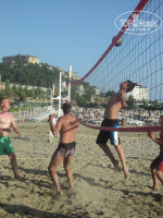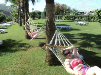 Территория не большая, но уютная. очень понравились цветы, зелень. на пляже лежаков хватало, матрасов тоже. Есть где посидеть отдохнуть за чашечкой чая, кофе или пива. Мы просто так не лежали, ходили играть в бочу, стреляли из воздушки, играли в дарц в настольный теннис, муж играл в валейбол и в водное поло. Ходили в сайну и хамам(В сам хамам вход бесплатный, а процедуры платные).