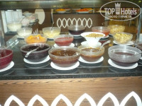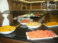 Питание в отеле отличное, разнообразное. Конечно, для наших деток, не приученных к зелени и овощам, а также к всевозможным специям в горячих блюдах, было сложновато что-то подобрать. Старший ел булочки, картофель, макароны, рис, курицу, яблоки, апельсины, арбуз, соки, пепси. А младшему брали из России каши разводные и консервы. Но зато уж мы с мужем отъедались.Утром куча булочек, круассаны, горячие бутерброды, сырный и колбасный стол, стол с очищенными и порезанными фруктами, мюсли и хлопья нескольких видов,йогурты, варенье сортов 10, молоко, яйца в разных вариациях, напитки... Всего и не перечислишь. На обед обязательно брала супчик, правда пару раз был очень острый, а так вкусненько.Несколько видов гарнира, мясного, овощи, различные варианты смешивания овощей, местные пирожные. Всего всегда так много, а приходишь голодный, в результате набираешь много всего, а потом от стола откатываешься как колобок. , я за 10 дней набрала 3,5 кг. А если бы не было с нами детишек, то все 5-6 кг. точно бы набрала. Стоит отметить, что и в ресторане очень приветливые официанты, и в барах бармены. Все на позитиве!
