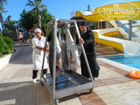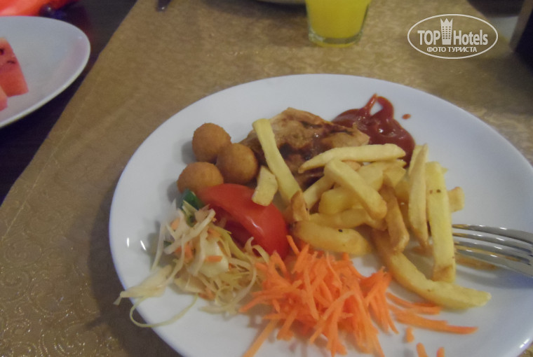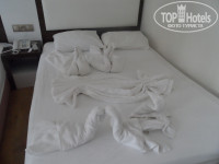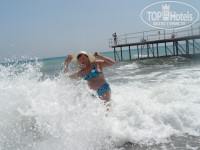ЗАСЕЛЕНИЕ.приехали в 5 вечера по местному времени.Первый показанный номер на втором этаже с видом на дорогу был не готов, в нем шла уборка,второй был так же на втором этаже но с другого края,с таким же видом на дорогу,я подумала,что показывают специально плохие номера,что бы дали им денег,и отказавшись от второго номера,подходя к рецепшн,я достала 20$(так посоветовали в тур агентстве,не пожалейте 20-ки номер дадут хороший)там я пыталась объяснить,что нельзя ли номер хотя бы повыше,а лучше вообще на другой стороне где бассейн,все таки мы с детьми,и дала 20-ку,деньги взяли и на любое мое слово говорили,да,да.Вот еще странность на рецепшн очень плохо понимают русский,зато практический каждый официант не только понимает,но и прекрасно изъясняется на русском.Так вот деньги взяли,попросили подождать,ждем 30 минут,дети хотят есть,спать,но им все равно,подошла спросила,говорят,скоро,скоро,и вот так еще пол часа и еще...короче через часа полтора отвели нас в тот первый номер ,где шла уборка,сил спорить с ними просто не было,то ли мы просто не понравились,то ли они не поняли,но первое впечатление об отеле было испорчено.Вывод денег лучше не давать,поселят там где захотят. ЕДА.все было вкусным,особенно десерты на ужин,торт,пироженое;еще были соки юпи,кофе из кофе машин, чай вкусный, из фруктов давали арбуз,дыня,яблоки,апельсины,на рынке брали клубнику по 2$,черешню,абрикосы.голодными не будете:) МОРЕ очень красивого бирюзового цвета,одно но:) это волны,может оно и бывает спокойным,но мы этого за 12 дней не увидели,так попрыгаешь,попрыгаешь в волнах ,да и пойдешь в бассейн:) еще конечно дно ужасное особенно на нашем пляже,поэтому все ходят на соседний,там получше.БУДЬТЕ ОСТОРОЖНЫ!!! на пляже спасателей нет,был даже трагический случай со смертельным исходом,мужчина с красноярска прыгнул в воду с нырялки,сломал шею и захлебнулся,никто не помог...только потом повесили табличку,что нырять запрещено и то только для того,что бы наверное отмазаться и не платить семье страховку. ХАМАМ есть при отеле 25$,мы ездили от пегаса в городской,предупреждаю,когда будут делать массаж,найдут у вас проблемы со спиной,варикоз на ногах,целюлит и еще много чего,не ведитесь и не соглашайтесь на дополнительный массаж:)(кому за 150-200,мне за 100 предлагали за один сеанс!) ПУТЕВКИ можно приобрести почти в 2 раза дешевле,чем например у пегаса,буквально через дорогу напротив отеля,это безопасно,проверенно:) Кстати русских в отеле очень мало для нас это минус,одни немцы пенсионеры,поляки,да литовцы.Анимация для детей каждый день одна и та же,для взрослых на любителя и за наши проведенные там 12 дней 4 вечера вообще ничего не было,днем пляжный волейбол,в бассейне мяч в ворота покидать,дротики,пинпонг.