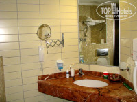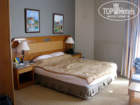 Предложенный нам номер 1514 был довольно большого размера с двухспальной кроватью типа «Ленин с нами» и раздвижным диванчиком. Пять стен комнаты в соответствии с архитектурным решением корпуса №1 в виде восьмиугольника, создавали оригинальное впечатление асимметричности. Ванная комната радовала не только внушительными размерами, соперничающими по площади с кухнями малогабаритных «хрущёвских» пятиэтажек. Рядом с большим зеркалом имелось выдвижное поворотное «зеркало заднего вида», позволяющее любоваться степенью «обжаренности» спины не прибегая к субъективному мнению спутника по проживанию в номере. Что сильно радовало мою жену после ежедневных «трудов» по приобретению явновыраженных следов посещения Средиземного моря в мае. Форма и компоновка ограждения балкона такова, что появляться на нём без нарушения норм нравственности можно в любой одежде (или совсем без неё). К моей (и жены) радости, балкон оборудован раздвижной сушилкой одежды, позволяющей разместить на ней двухдневную норму влажной купальной одежды. Правда, при этом полотенца, в том числе и выдаваемые по отельным карточкам, приходится располагать на пластиковых креслах, кои вместе со столиком составляют балконную мебель.