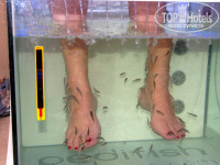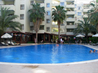 На мой взгляд, с опытом отдыха в полутора десятках четырёх и пятизвёздочных отелей Турции, этот отель вполне тянет на звание пятизвёздочного «муравейника» среднего уровня. Хотя бы три очевидных факта имеют тому подтверждение. Достаточно большая территория с апельсиновым садом в середине. Наличие SPA центра с большим спектром услуг, включая не виданную мною вживую ранее процедуру очистки кожи ног рыбками (о которой неоднократно слышал). И забота о здоровье постояльцев, включая направленность против ВИЧ инфекции – в прайс-листе, лежащем в номере, указана не только стоимость различных напитков, но последним пунктом значатся противозачаточные средства для осуществления безопасного секса.