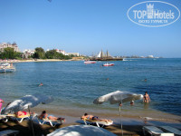 Позволю себе заметить, что высказанная в некоторых прочитанных мною отзывах, хула по части малого количества лежаков у пляжа на фоне большого номерного фонда отеля, скромно умалчивает об очень большом количестве таковых вокруг четырёх бассейнов. Посчитанное навскидку количество лежаков на, справедливости ради, действительно, небольшой пляжной полосе, превышает сотню. Столько же примерно располагается на зелёной лужайке между пальм над узкой песчаной полосой пляжа у моря. К тому же многие туристы отбывают ежедневно на различные экскурсии. А некоторые (в их числе и я) отправляются для купания в бухтах соседней с отелем городской зоны отдыха. Там нет лежаков, но, зато очень чистая вода из-за мелкогалечного дна, в отличие от песчаного дна бухты с пляжем отеля. Как хорошо известно, при малейшей волне, поднимаемой ветром и приходящей с открытого моря, вода быстро перемешивается с песком и мутнеет, что часто имело место во время нашего отдыха.
