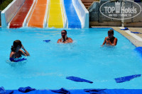 Очень понравился аквапарк! При нас не поколечилось ни одного человека, никто не расшибался, не бился и за бассейны не вылетал! Всё было отлично! Накатались с горок на год вперёд)))) Для детей там проводятся дневные пеннные дискотеки, есть бар, в котором можно просто утолить жажду, из взрослых напитков только пиво, крепких напитков в аквапарке нет.