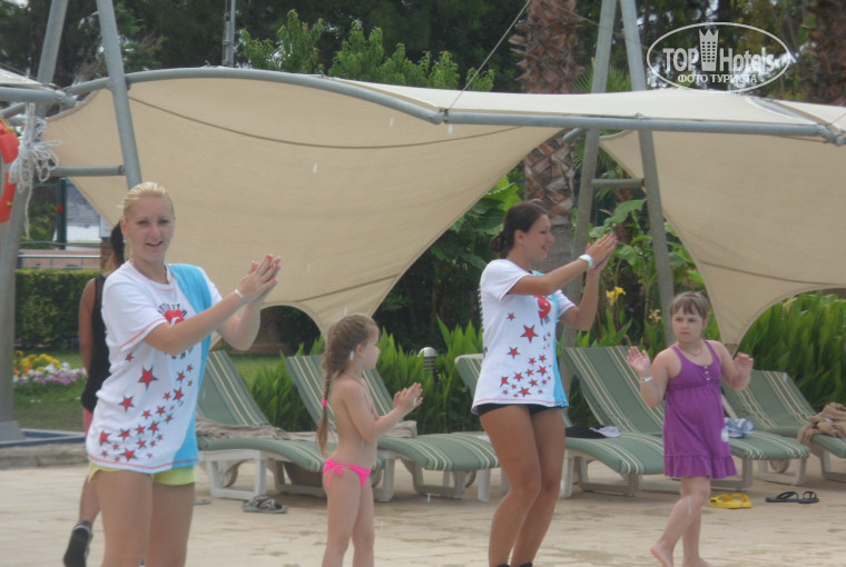 5. Развлечения. В этом году работала другая команда аниматоров. И хотя поначалу мы немного расстроились из-за этого, потом признали, что эти – лучше. Намного интереснее и разнообразнее стали вечера в амфитеатре. Были и комедийно-конкурсные вечера, организованные силами аниматоров, были и приглашенные труппы (китайские акробаты, бразильский карнавал, турецкие танцы). Всегда было интересно и нескучно. Днем ребята тоже выкладывались. Думаю, что каждый мог найти себе развлечение: и акваэробика, и дыхательная гимнастика, и водное поло, и дартс, и, конечно же, веселые конкурсы возле бассейна. Лично мне больше всех запомнилась Маша, которая отдавалась спортивным занятиям всей душой. Умничка, Маша, спасибо и удачи тебе! О девочках, которые занимались детками в миниклубе (Диана и Сюзи), ничего лично сказать не могу, так как с ними не общалась, но слышала от других туристов только хорошее. Насколько я могу судить, дети их любили. Главный аниматор Сонэр оставил двойственное впечатление. С одной стороны, чувствуется профи. Реально было и интересно, и весело с его приколами! Но с другой стороны, его взгляд (холодный, смотрящий иногда на отдыхающих с некоторой долей неприязни и высокомерия) говорил о его истинном отношении к туристам. Да и некоторые фразы, сказанные на турецком о русских туристах (когда он думал, что никто не понимает), открывали его настоящее негативное отношение к ним. Но дело свое делал честно и безукоризненно, за что ему – респект, как артисту и аниматору!