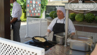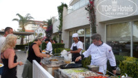 4. Питание. У нас претензий нет. В нашей семье у всех разные вкусы. И, тем не менее, каждый находил то, что лично ему по душе. Мы всегда были сыты, то, что мы выбирали, было вкусным, качественным и свежим. Больше всего пришлись по душе: мясо птицы (филе) на гриле (готовят с 12 дня в снэк-баре), куриные крылышки на гриле. Очень вкусно, объедение. Никогда не знала, что куриное филе может быть таким сочным. Мы даже пересмотрели свое отношение к шашлыкам из свинины. Одна проблема, не знаем, как замариновать птицу, чтобы она получилась такой нежной и сочной. Если кто знает рецепт, поделитесь, пожалуйста. Шашлычки из курятины на шпажках не понравились – суховаты. Лично мне по душе были молочные продукты: на завтрак очень вкусные и свежие йогурты, в обед - айран (в беседке, где турчанка готовила с 12 до 16 очень вкусные лепешки). Также понравились всевозможные овощные сотэ, птица с овощами, протертые супы. Овощи-фрукты были представлены огурцами-помидорами, перцем, яблоками, апельсинами, сливами, абрикосами, арбузами. Я понимаю, что у других людей другой вкус, и кому-то было невкусно или мало. Для нас же питание заслуживает оценки – отлично. Спиртные напитки на нас, конечно, не произвели впечатления. Но никто его и не ожидал. Более-менее можно пить белое и красное вино, пиво, ну еще джин с тоником, мартини. Виски, водка не соответствуют своим наименованиям. Так, какие-то разведенные напитки. Из недостатков по сравнению с прошлым годом могу отметить то, что убрали автоматы самообслуживания (с пепси, фантой, кофе, чаем, соками и т.д., которые раньше были в баре возле бассейна и в лобби-баре). Раньше можно было подойти и налить себе необходимый безалкогольный напиток легко и просто, без чьей-либо помощи. Теперь же надо стоять в очереди к бармену. Из-за этого, кстати, очереди стали гораздо больше. Совет менеджерам отеля: верните эти автоматы отдыхающим. Меньше нервов будут тратить, ожидая очереди, чтобы сделать заказ бармену.