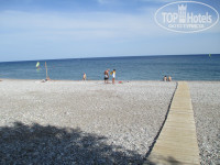 Далее близость к морю: Киотраи на первой линии, мелкая галька, на пляже предлагают катание на банане, ватрушке, а также прогулку на катере со стеклянным дном!-25 евро.Берег -галька, к сожалению, нет бесплатного навеса, только платные лежаки под зонтиками-даже на Азовском море зонтики и плетеные беседки на берегу моря бесплатные.