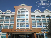 Отдыхали в отели Maya с 22 мая по 1 июня. Заселили сразу (мы прибыли в 10 утра), на ресепшен была Соня. Номер на 4 этаже с видом на бассейн. Номер чистый уютный , была проблема с сантехникой , и электрикой но быстро решилась. В наличии в ванной были- шапочки , гель, шампунь – пополняли правда по запросу, вода ежедневно по 2 бутылки. Убирали каждый день , постельное белье меняли через день, полотенца ежедневно –горничная шустрая девушка. Главное не забыть включить табло- что нужно убраться или не беспокоить. Территория –зеленая два бассейна , 2 бара плюс бар в лобби, бармены молодцы работают как заводные)) Ресторан – кормили вкусно сравнивая с другими 4* думаю , что отель тянет даже на 4*+ . Был по началу небольшой минус – на ужин происходило столпотворение. Но когда открыли ещё на улице раздачу- стало получше. Управляющие и все руководство отеля ела все то же самое что было выложено в раздачи. Кстати Али –управляющий находился в отели с утра до вечера и помогал решать людям возникшее проблемы. Пляж -всегда были свободны лежаки. Пляж расширили за счет немцев (отель справа) Завезли много зонтиков –их нужно было втыкать глубоко –а то ветром иногда сдувало. )) Бар на пляже- вино, пиво, горячие блюда ,лепешки все это было в достатке с 11 до 16. Анимация супер. Сырыхан и группа анимашек не давали скучать. На пляже –зарядка , волейбол. У бассейна аквааэробика, игры, учили танцевать. По вечерам мини диско, шоу, танцы. В общем отель понравился! Больше сего в отели люди из России и СНГ. Очень много детей, к сожаленью многие родители приезжая на отдых перестают смотреть за ними, те делают что хотят. Ведут эти дети себя отвратительно, но это проблемы воспитания. Например накладывают руками с раздачи себе в тарелку, а потом вываливали обратно, или пацаны обращаясь к бармену начинали с фразы -Эй дай колы! Хотя жить они не мешали но неприятно смотреть на них. В самом отели атмосфера была хорошей- дебилов не было, правда перед нашим отъездом заехала тетя которой все не нравилось, бурчала на каждом шагу, возможно отдых уже у ней испорчен. Возможно на следующий год мы опять будем рассматривать вариант провести отпуск в этом отели, а пока благодарим за отдых!
