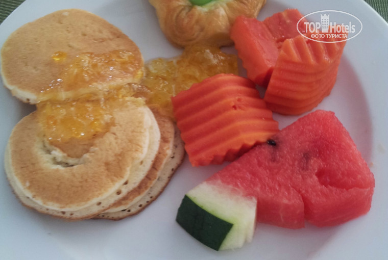 Завтраками я была вполне довольна: оладушки, круассаны, арбуз, ананас, папайя, хлопья. Муж уплетал яичницу с беконом или сосиски и тоже не жаловался. Растворимые каши привезла с собой на случай ностальгии по родине или на случай капризов желудка, и почти их не ела.
