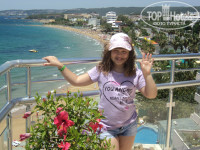 Отдыхала с дочкой 10 лет. В Турции первый раз. Прилетели около 6 вечера. В отель приехали около 9. Никакой толкучки около ресепшена не было, заселили за считаные минуты. Платила за annex (корпус С), но видимо номера в этом корпусе были заняты и нам был предоставлен семейный номер в главном корпусе А с огромной лоджией. На следующий день должны были переселить. Переселили нас на третий день в оплаченный нами номер в корпусе С. Номер скромный, но чистый, с видом на море. Душ в номере просто убил! Смеситель находиться в полуметре от дна ванной, под который даже голову невозможно засунуть. А под потолком прилеплен такой же короткий не снимающийся душ. В корпусе С такой душ во всех номерах. Поговорив с людьми, как они умудряются мыться и мыть маленьких детей услышала такой ответ: "Мы отрезали верх у пластиковой бутылки и поливаем из нее..." КРУТЬ! Я думала так уже не бывает даже в трех звездах.