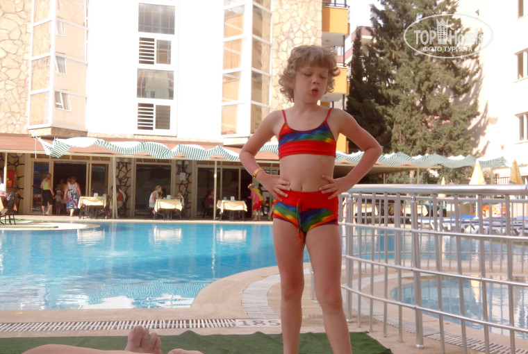 В целом отель понравился - маленький, уютный, семейный. После 23.00 - тишина, хотя рядом вплотную стоят другие отели. Море штормило, поэтому большую часть времени провели у бассейна. Хотя отель был полностью заполнен, места на лежаках хватало всем.