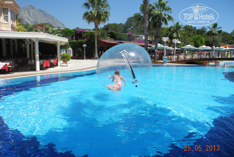 Комфортный, уютный, с внимательным персоналом.Территория отеля просто утопает в зелени и цветах. Отличный пляж,песочно-галечный, аниматоры русскоговорящие.Что очень бы хотелось отметить в этом отеле никто не ходил по пляжу и не предлагал поездок по торговым центрам (кожа, золото), как это обычно происходит в других отелях.