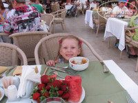 2. Питание. Младшей полтора года, но давно ест с общего стола, поэтому никаких проблем с ее питанием не было. Если у вас такой малыш - в качестве питья возьмите растворимый час в банках Hipp или Baby. Фруктов было достаточно, мы в основном брали арбузы, дыню, клубнику, все спелое и очень вкусное. Очень много жареного, видимо это особенность южного побережья, т.к. на западном было больше тушеного, в т.ч. мяса. Тем не менее нас все устраивало, все было вкусно, быстро определились с предпочтениями и голодными ни разу не остались.