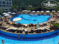 Территория,как писали многие, не большая,отель и бассейн. Погулять можно в соседнем парке, в 2-3 мин.ходьбы. Бассейн чистый, не так сильно хлорирован,лежаков всем всегда хватало, музыку включают с 10 до 12 и с 14до 17. До пляжа медленным шагом идти минут 5-7,каждые пол часа возит автобус туда и обратно, в нем в основном ездят иностраные бабушки и дедушки. По пути к пляжу через парк находится множество кафешек из которых звучит русская музка)),кальянных, магазинчиков. Проблем с лежаками не возникало, сложно было только найти их в теньке. На пляж ходили не рано,часов в 10, как писали в одном отзыве,что невозможно занять лежак и надо встать в 6 утра для этого,мы с этим не столкнулись. В баре на пляже есть прохладительные напитки, но они настолько разбавлены,что лучше сразу выпить простой воды! Та же на пляже предлагают всякие водные развлечения: банан,подушка,парашют,поездки на катамаранах,лодках, при этом вас фотографируют и понравившиеся фото можно купить.