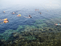 Конечно основное, ради чего стоит ехать в Египет, это Красное море. Но... Наверно я сейчас огорчу кого-то, так как вдоволь наплескаться в "Рехане" вам не удастся. Это страшное слово ПОНТОН. На пляже "Реханы" он небольшой, метров 100 или меньше (у меня не очень с глазомером), от берега тянется мёртвый коралл с песчаными островками (можно полежать в воде, но не поплавать - глубина от щиколотки до бёдер максимум, и то это во время прилива), а с понтона под вами будет синяя бездна, говорят метров 40 или больше. Кто хочет посмотреть красоту кораллов и подводного мира, плавают с масками и ластами вдоль коралла (он там действительно хорош, сама плавала и любовалась), но просто так купаться с понтона не очень приятно - немного жутко от осознания глубины под тобой, народ кучкуется возле лесенок и в зоне досягаемости оных, да и штормит в этой части Шарма через день (в эти дни вообще ни о каком купании на глубине не может быть и речи). Поэтому, уважаемые туристы, выбор за вами - как и где отдыхать. Нам в этом плане повезло больше - мы знали, где в бухте Набк (а именно в этой части Шарма находится "Рехана") есть шикарный пляж с песчаным входом в море и кораллом сбоку. Для заинтересовавшихся могу рассказать. Ловите такси за 5 баксов через дорогу от вашего отеля (у "пятёрки" с этим же названием) и просите отвезти вас на пляж отеля "Фараана" в самом конце бухты Набк (таксисты прекрасно его знают). В центральные ворота, ведущие на огороженную территорию этого пляжа, вас не пустят, поэтому пройдите вперёд по дороге между отелем и сетчатым забором пляжной зоны до полицейского поста (минуты 2-3). Не пугайтесь, полиции мы даром не нужны, они там сидят в тенёчке на всякий случай, так как за отелем "Фараана" цивилизация заканчивается, и царствуют бедуины. Опять же не бойтесь и их, они там основали что-то типа рыбацкой деревушки и занимаются своими делами, а до туристов им дела нет. Итак, проходите перед носом полицейских направо в калитку, перед которой стоит рекламный щит "MOUSA BAY" (это конечный пункт вашего визита - частный пляж, хозяина зовут Марса) и вдоль ряда пальм топаете к морю. Слева на пляже увидите несколько построек и зонты из пальмовых веток с лежаками, столиками и креслами. Вам сюда!))) Хозяин просит по 2 бакса за место под солнцем на весь день, но мы отдавали 5 за троих, и все были довольны. Вот, где вы сможете вдоволь наплаваться, имея возможность в любой момент ощутить под ногами песчаное дно. Конечно, здесь тоже бывают ветра и шторм, но если на улице сильно не сквозит, то, будьте уверены, что и на этом пляже в этот день море будет спокойным. Мы съездили туда два раза уже в конце отдыха, потому что предыдущие дни были ветреными, и мы не стали рисковать, но можно было и побольше туда поездить. Обратно тоже уезжайте на такси, пройдите до основной дороги вдоль забора и поймайте машину. НЕ САДИТЕСЬ в маршрутки! Только в легковые приличные машины! С египтянами не заигрывайте,но и не грубите, ведите себя достойно, и отношение к вам будет соответствующее. Да, поездка от вашего отеля до этого пляжа займёт не больше 7 минут. Удачи и приятного отдыха!