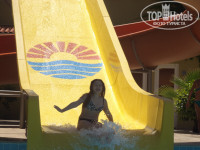 Территория очень уютная, повсюду цветы, зелень и везде очень чисто! Каждую ночь травили насекомых, поэтому их практически не было. На море никогда не было проблем с лежаками и матрасами, переход через небольшой туннель под дорогой и ты на пляже. Там и бар, и столики, и гамаки, и качели для детей, различные игры - волейбол, дартс, боча... В общем занятие найдет себе каждый по душе. Возле отеля два бассейна, детский и взрослый, сначала мне показалось, что он маленький на такое количество людей, но все оказалось хорошо, ведь очень многие предпочитают море. Еще есть бассейн с горками, включают их два раза в день с 11-00 до 12-00 и с 15-00 до 16-00, этого кстати вполне достаточно. Мы познакомились с одной семейной парой, так получилось что мы в одном самолете и прилетели из Омска, у них тоже дочка, девочкам было не скучно вместе. Им отель тоже очень понравился, и никто ни разу не пожалел о своём выборе. Я сейчас читая отзывы, нахожу много знакомых лиц, даже пару раз нашла на чужих фотографиях себя. И всем кто нас помнит, передаю привет.