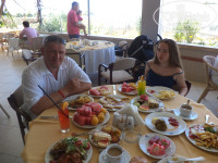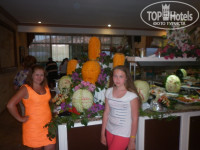 Теперь что касаемо питания. Всё очень вкусно и разнообразно, я даже не ожидала такого! Много мяса баранина, индейка, курица, говядина, мне очень понравилась рыба. Еще всегда различные овощи, и свежие, и маринованные, и тушеные, и жаренные на гриле. Гарниры тоже на любой вкус. Очень понравились слоеные пирожки с творогом, слегка подсоленным. А про фрукты вообще отдельно: клубника, каждый день, вкусная и сладкая, арбузы, дыни, абрикосы, персики, сливы, апельсины, яблоки, бананы. Дочке полюбились фруктовые салаты на завтрак, да и не только ей)) А на турецкую ночь было такое разнообразие всего, глаза разбегались! Про питание на пляже, это лепешки и гамбургеры, тоже вкусно, есть еще макароны с овощами и сыром, поджаренные на огне перед ужином возле бассейна так что голодным там невозможно остаться! Напитки тоже разнообразные. Я на удивление не поправилась, хотя ожидала этого.