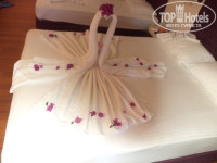 У нас рейс перенесли на 5 часов раньше, поэтому в отель приехали ещё не было 6 утра. Заселили нас моментально, не глядя на такое раннее время! Так как мы приехали с друзьями, то попросили номера рядом, и это оказалось без проблем, через стенку. Номера были на 4 этаже, №438 и 436, с видом на море, и это было просто чудо - каждое утро выходя на балкон видеть такой красивый пейзаж! Шум дороги нам абсолютно не мешал, тем более что ночи прохладные, и намного удобнее спать с кондиционером, который кстати безукоризненно работал, и температуру можно было ставить самому какую захочешь. В номере очень красиво и чисто, убирали каждый день, полотенца тоже можно было менять хоть каждый день, достаточно было оставить его на полу. Практически каждый день какие-нибудь красивые фигурки из полотенец и цветов, всегда много всяких коробочек и баночек с шампунями и гелями, и это не зависит от того, оставляешь ли ты чаевые или нет, но мы оставляли.