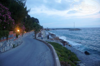 Пляж песчаный, местами мелкая галька, море неглубокое, но на глубине ок. 1.2 м начинаются камни. На камнях много морских ежей, будьте осторожны!!! Один раз видел ежа почти у берега, на глубине 0.5 м! В море много разной рыбы, от крохотных мальков до особей в 30 см и больше, отдыхающие ее подкармливают. Лично я, плавая с маской, видел каких-то многоножек и морской огурец, жена видела небольшого осьминога.
