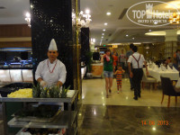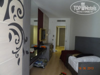 Мы отдыхали в Kirman Belazur с 7 по 17 июня.Номер у нас был Family Room,состоящий из 2х раздельных комнат.В каждой комнате имеется телевизор и мини бар.Сам отель красивый,видно что все новое. Приехали мы в 16:30, заселили нас за 5 минут.Территория не большая,зелени не много,но за счет навесов и зонтиков можно посидеть в тени. Готовят вкусно,но однообразно,для детей(у меня ребенок 2,5 года) оказалось проблемой найти подходящую еду.Детский ресторан может предложить свои блюда ( картофель фри,спагетти и картофельное пюре+овощи и сладкое)только на ужин. На завтрак и обед вам придется искать для своего чада из общего стола.Кстати в первые три дня прибывания в отеле для ребенка такого возраста из еды я ничего не могла найти,суп из диетического стола с характерной кислинкой и мятной приправой вряд ли чей малыш станет кушать.Каши появились чуть позже и то в основном ресторане а не в детском, поэтому заявлять что есть детское меню я считаю неуместно в данном случае.Что касается пляжа- на пляже песок,но при входе в море мелкие камушки, очень неудобно.Пляж абсолютно не чистят,убирают только крупный мусор. В номерах убирают так я и не поняла по какой системе,но раз пять за 10 дней убирали.Бар пополняли тогда когда убирали,а не каждый день как заявлено.В номерах слышимость ужасная,все движения соседей ,открывание и закрывание межкомнатных дверей и т.д. все слышно так,как будто ты находишься с ними в одной комнате. Wi-Fi имеется только в лобби,но те у кого номера находятся в этом районе тоже можно пользоваться интернетом.Кстати интернет постоянно сбивается через определенное время,постоянно нужно вводить какой то код,который через пару дней опять поменяют и вы будете искать новый. Анимация слабовата,вечером в амфитеатре детская дискотека,затем развлекательная программа.Чтобы попасть в ресторан A la carte,нужно постоять в очереди,потому что запись с 10 до 11 часов,к тому же в итальянский ресторан детей до 16 лет не пускают-такая политика отеля.На детской площадке небольшие три горки ,пару качелей для маленький и две для деток побольше. В основном ресторане первое время постоянно бегали за столовыми приборами и салфетками,потом ситуация улучшилась)) В общем нам не понравилось,видимо ждали чего то лучше чем увидели.