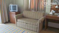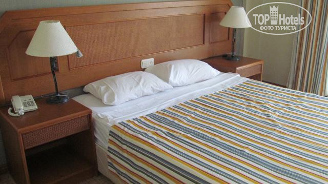Теперь об отеле. Приехали утром, сходили на завтрак и сразу же получили ключи от номеров в пятом корпусе. Даже не пришлось ждать 14 часов. За это огромное спасибо обслуживающему персоналу на ресепшн!!! Стандартный номер с двухспальной кроватью и раскладывающимся диваном. В номере телевизор,столик с зеркалом,кондиционер,ковровое покрытие. В мини баре только одна бутылка воды при заселении, больше не пополняется. Уборка каждый день- постель заправляли ежедневно, а вот пылесосили и меняли полотенца раза 2-3 в неделю.