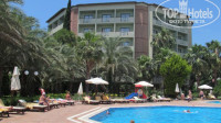 Очень впечатлила территория Алары Парк !!!!! Это на самом деле парк- очень красивый,ухоженный,цветущий. Каких только деревьев там нет- апельсиновые,мандариновые,грепфрутовые,гранатовые...Финиковые,банановые пальмы, манговое дерево видели, кедры и даже тополь. Отель утопает в зелени и цветах.