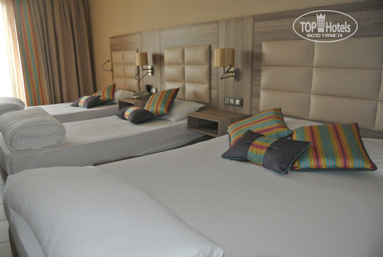 Отдыхали в этом отеле с 01.06.13 по 10.06.13 г., в отель приехали в 8.00 часов утра, менеджер на рессепшен, приятный молодой человек, довольно радушно принял и пригласил пройти в ресторан на завтрак. После завтрака нам сразу дали ключи от номера. Сам отель (его внешний вид), а затем и номер превзашли все мои ожидания!!! отель, видно, после полной реконструкции: территория - шикарная, чистая, ухоженная, зеленая, море теплое (пляж песчано-галечный) есть все необходимое......, все новое; номер нам дали для семьи как минимум с двумя детьми (хотя мы отдыхали с одним ребенком), фото прилагаю. Для себя отметила, что в отеле очень много гостей с детьми. Анимационная команда просто Супер - люди настоящие таланты, разговаривают как минимум на трех языках, занимают, развлекают, танцуют латину, а от клубного танца, гарантирую, будете просто в восторге!!! Вообщем, езжайте, не пожалеете! Для меня отель оставил только положительные эмоции и незабываемые впечатления!!!