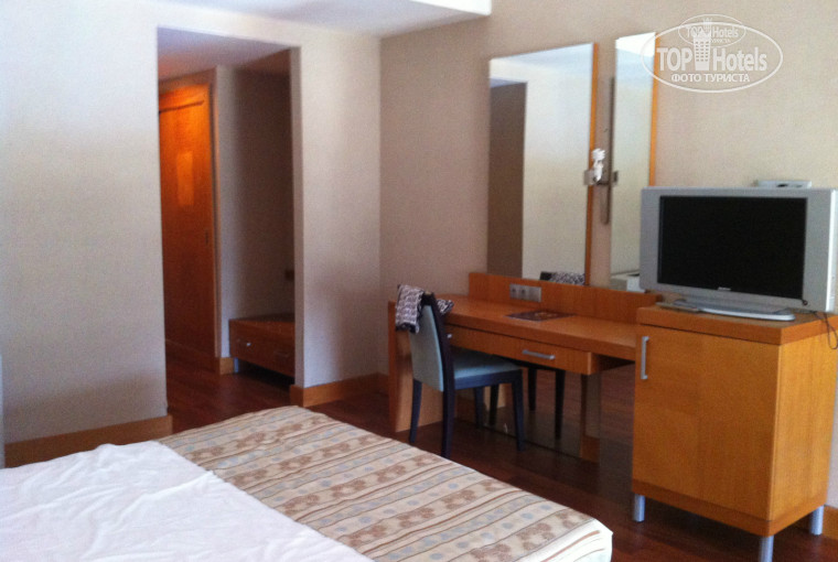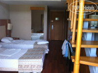 минусы несомненно были, но везет тем, кто едет с хорошим настроением!)) начитавшись негативных отзывов я засомневалась сможем ли отдохнуть от души или придется постоянно быть чем-то недовольной.. мой совет - относиться ко всему проще и получать удовольствие;)) начнемс с размещения) читала про ужасные номера эконом, у нас по путевке были 2 стандарта, приехав в отель как выяснилось стандартов не было, но люди чтут закон и по договору они не могут нас поселить в номер класса ниже, а вот выше без доплат - могут! в итоге - дали два дюплекса!)) оба номера на четверых с двумя санузлами и двухэтажные!!)) приятно удивились) номера чистые, но кто едет придираться и находить изъяны - найдет, но это мелочи, по два телека с русскими каналами, телефоны даже в туалете, холодильник, балкон. единственное, что я лично списываю на размер отеля, горят не все лампы, т.к экономят электричество, потому что отель огромный и "прокормить" его нереально, и убираются символически - полы и унитазы помыть помоют, а вот пыль ежедневно не протирают, но ее там нет) забывают менять шампуни и да, хоть и 5 звезд - зубную щетку и пасту лучше вести с собой - у нас их не было, как впринципе и халатов и тапочек, если кому то они нужны. Полотенец достаточно, белые, чистые) постель меняют раз в три дня, но если испачкаешь - меняют сразу - краска от волос отпечаталась - на следующий день поменяли) еще одно интересное: у нас получилось два дюплекса, впринципе одинаковые, но в одном было две ванны (на первом и на втором этажах), а во втором одна (на первом был только туалет с раковиной, но по размеру такой же).