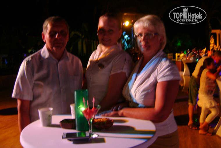 О самой АЛВЕ-арене можно говорить много и в восторженных тонах. Буду краток - это великолепие звука, красок, света !!! Каждая из программ на этой замечательной сцене заслуживает отдельного внимания - за 2 недели ни разу (!) не повторилась. Большего ожидали (сравниваю с предыдущими поездками в другие отели!) от программы "Турецкая ночь", но представление ограничилось фрагментом турецкого праздника-сватоства перед основным рестораном и небольшим шоу-концертом на главной сцене. А хотелось бы увидеть и ярмарку турецких товаров, изделий, верблюдов, жареное мороженое, фейерверк на пляже и прочее ..... Но это лишь мои субъективные пожелания! А прекрасный фейерверк мы всё-таки увидели после концерта румынской группы "Акцент"! )))