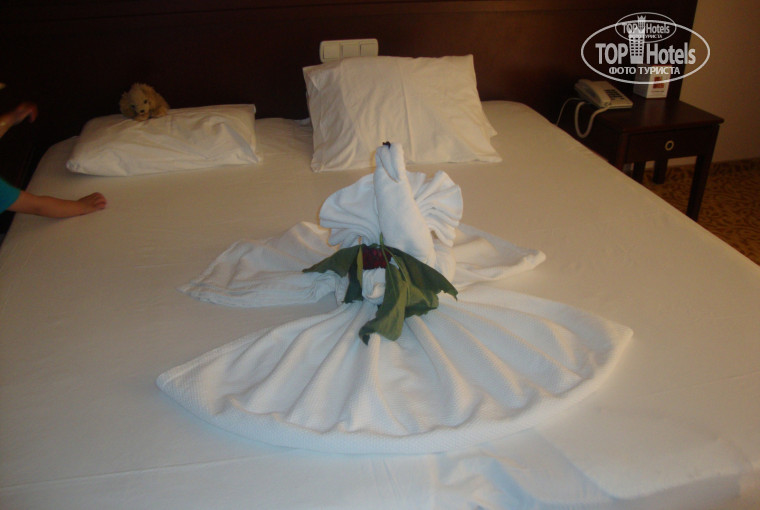 Отдыхали в отеле с 01июня по 13 июня. Отель произвел хорошее впечатление. В Турции второй раз, за границей третий. Мы прибыли в отель после завтрака. Расселили быстро. Дали номер семейный. Всё чисто, аккуратно прибрано. Мебель простенькая, техника - всё ВЕКО. Душ, кондиционер работали исправно. На телевизоре есть несколько российских каналов- первый, музыкальный, ещё пару каких-то информационных. В общем, устраивало всё, так как не особо привереды. Можно придраться к сломанной ручке на балконе, пару раз забыли положить шампунь, полотенца грязные не всегда меняли - но для нас это мелочи(пишу, может кому-то важно!).