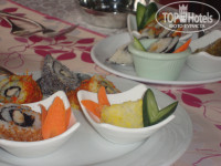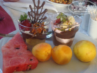 Об еде отеля уже написано очень много, добавлю , что все фрукты были - яблоки,апельсины, сливы, абрикосы, арбузы, дыни, клубника, бананы. Вообще отель балует своих отдыхающих великолепными ужинами. Огромное изобилие мяса, рыба, овощи, сладкое - шеф повар лично обходит все блюда, контролирует качество - молодец! Пошли в рыбный ресторан, но решили, что лучше ужинать в основном. Там нам дали пару креветок, какие-то закуски из овощей и рыбу. Ребёнок сбежал в основной ресторан.