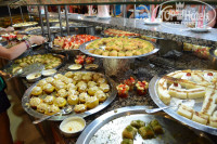 Еда разнообразная, много блюд из турецкой и русской кухни. Фрукты, много овощей, от сладостей вообще глаза разбегались.