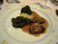Питание - шведский стол. Русские налетали самые первые и из-за этого создавались очередя. Мы приходили почти к закрытию, все уже порасходились и мы спокойно кушали )). Разнообразия в питании не было. Были макароны (паста) (вкусно), ризотто, мясо было, но разнообразия особо не было. Свинины там не было, мусульмане не едят свинину. Утром завтрак был неплохой: омлет, блинчики, йогурты разнообразные. Один раз можно было сходить в итальянский ресторанчик по предварительной записи. Так же по предварительной записи можно было ужинать у бассейна, где угощали мясом на мангале. Очень жаль, что в такой экзотической стране не получилась попробовать их фруктов. Были только персики не первой свежести, бананы и дыни.