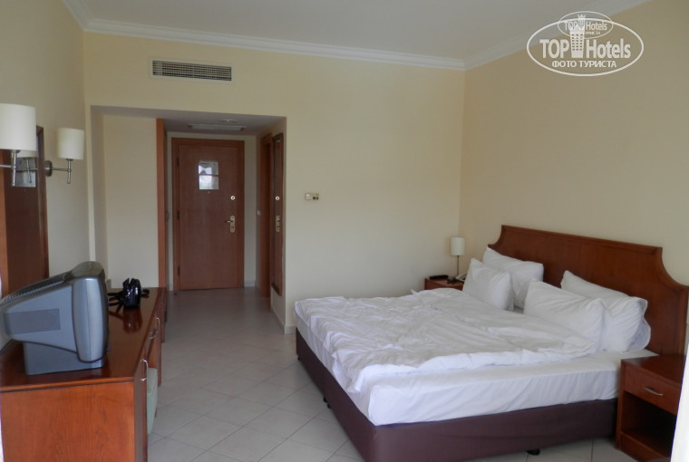 Тур оператором в нашей поездке был Библио Глобус. Сразу оговорюсь, читая предыдущие отзывы о трансфере от их партнеров, Бельмондо, было страшновато за дорогу до отеля. Но наверно БГ решил эти недочеты и трансфер прошел отлично, гид сопровождал до самого отеля и водитель вел автобус более чем хорошо. При покупке тура обещали, что время затраченное на трансфер будет два с лишним часа, на самом деле это время вылилось в три с небольшим. Заселение прошло довольно быстро, нам повезло при заселении на стойке дежурила русскоговорящая девушка Лена, гид привезший нас в отель помог заполнить карточки регистрации. Получили "пакет" с ключом, карточкой с номером ресепшен и картой на пляжные полотенца. Номера нам выделили во втором корпусе, в котором находятся стандартные номера, провожать к номеру нас никто не стал и мы пошли сами, там не заблудишься. Номер был на третьем этаже с видом на горы и маленький бассейн. Вопросов по номеру не было, все работало. Номер большой, светлый и комфортный. Ничего лишнего, все продумано и оптимизировано. В номере есть электронный сейф, для нас он был бесплатный. Минибар состоял только из воды, но по желанию вам его заполнят. Обмен карточек на полотенца и их последующая замена проходила на ресепшене внизу. Уборка номера проводилась каждый день, смена белья и полотенец раз в три, четыре дня, но здесь могу ошибаться. почти каждый день оставлял чаевые горничной, но разницы в уборке не заметил. Не скажу, что уборка была плохая, но при желании придраться можно всегда.